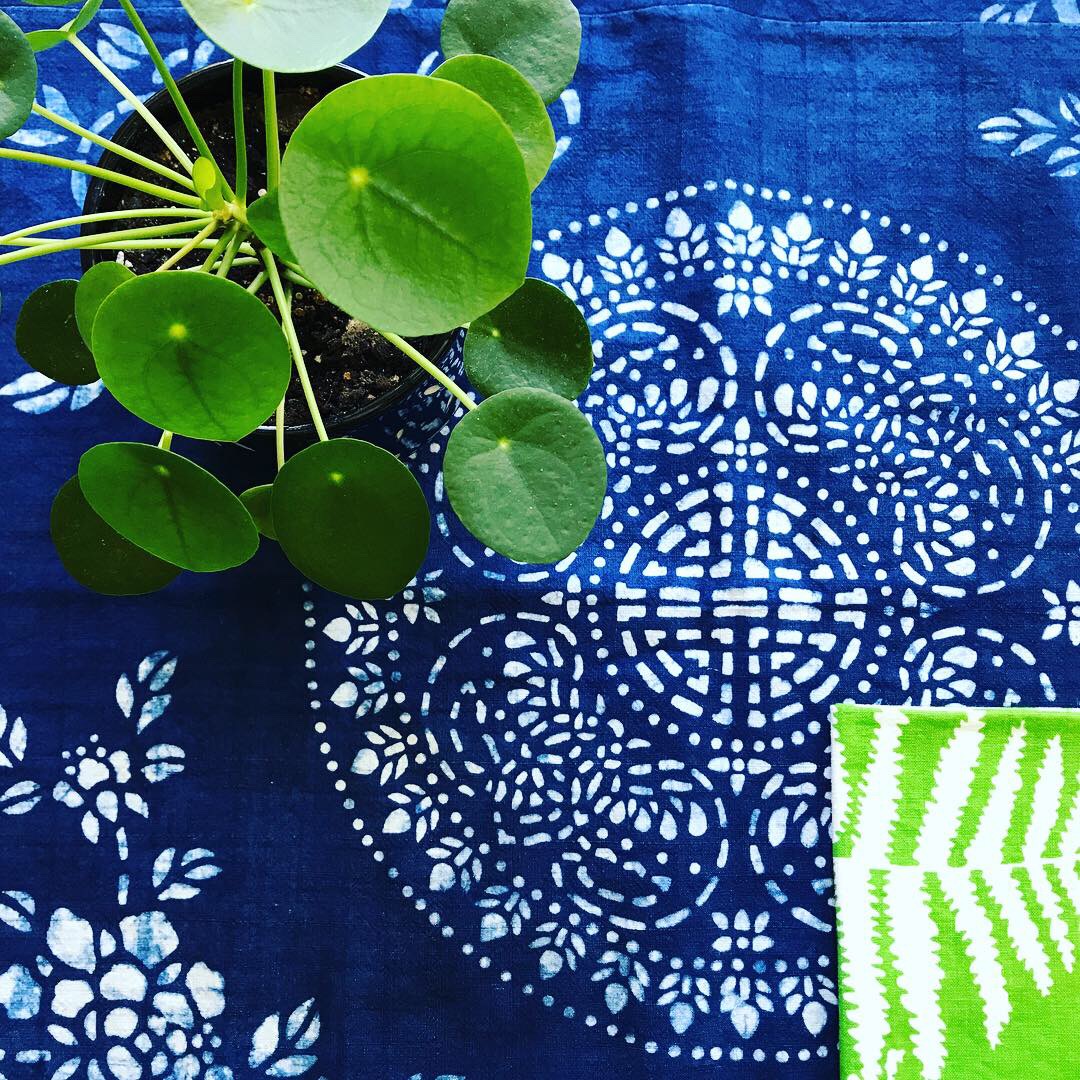 Our textiles are inspired by antique Japanese and Chinese textiles. They are hand dyed with indigo using a Japanese technique called Katazome. To create these patterns a paper stencil must first be cut by hand and lacquered before a paste made from glutinous rice is pushed through the stencil and onto the cloth. After the paste begins to dry the cloth can then be dyed in the indigo vat. Katazome is a time consuming and labor intensive process, but maintaining traditional methods is important to us. The fabrics that we produce are durable and can be used for home decor, table linens, bedding, upholstery or even clothing. Just like the antique fabrics that inspired us, our fabrics will only get softer and show more complex variation in tone with time and wear.